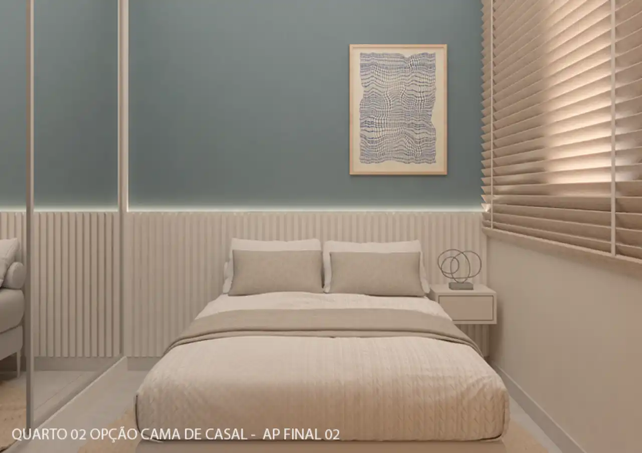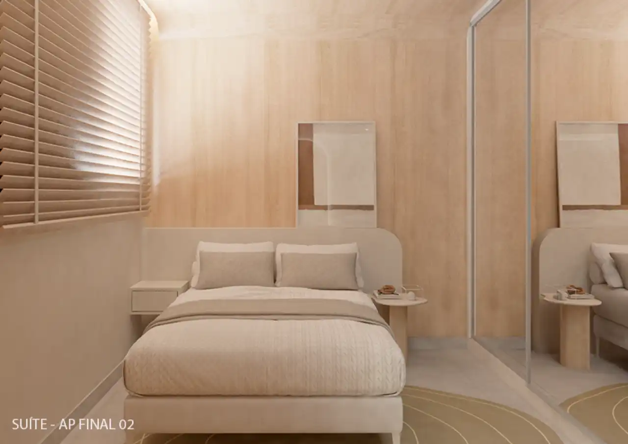 O imóvel tem 1 quarto, sendo 1 suíte, e 1 vaga de garagem.